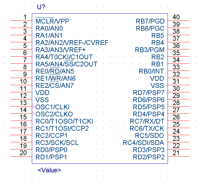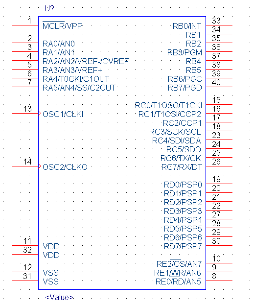 Neste tutorial ensinaremos como criar um footprint no OrCAD® Layout, dando continuidade ao tutorial onde desenhamos no OrCAD® Capture o esquemático do PiC 16F877A (figura 1) (Criando componente com Orcad Capture), entretanto neste faremos o desenho que representará o componente na sua forma física. (figura 2). Lembrando que o objetivo da escolha deste componente é para futuramente desenvolvermos uma placa de teste sobre ele, sendo interessante o aprendizado de todo o processo de elaboração da placa, desde esquemático, circuito impresso, montagem e programação. Todos esses passos serão abordados com o decorrer do tempo aqui no HSTUTORIAL.